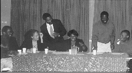David Williams '83, Mary Andes '91, Carlton Eversley '78, Sharna Davis Hatcher '82, Lester Barclay '81, and Stephen Smith '83 took part in the Gathering's panel discussion.