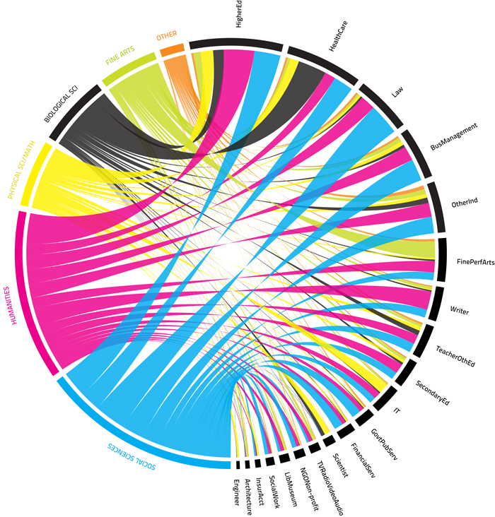 Major to Career Pathways for Oberlin BA Recipients, 1970-2009 Chart created by Ross Peacock, assistant vice president for institutional research and planning at Oberlin College.