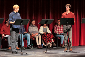 The celebration included five short plays performed in Little Theater and a world premiere staged reading of an unproduced Linney play, The Flower Hunter, directed by John Dillon. Other events included a lecture by Laura Callanan, Linney’s widow, about James Houghton, who formed the Signature Theatre Company after being inspired by the works of Linney; a lecture by Leslie Maslow ’90, who studied with Linney; a master class by accomplished actress Kathleen Chalfant; and an exhibit of original materials from the Oberlin College Archives and those lent by Appalachian State and the Linney family. “Romulus Linney’s Legacy: A Symposium,” moderated by Professor Roger Copeland, featured Chalfant, director John Dillon, playwright Leslie Maslow ’90, and, via Skype, Linney’s daughter, actress Laura Linney.