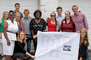 Mark Stockett and Naomi Lipke were married in Madison, Wis., on May 25, 2013. The couple lives in Stockholm, Sweden. Obies enjoying the festivities include (from left) Stephanie Patterson ’07, Hannah Hoose, Mark, Naomi, Elana Riffle, Brian Wonch, Melodie French and, not pictured, Gus Visscher. Hannah played the piano for the ceremony, and Melodie was best man.