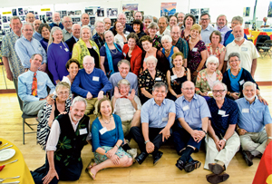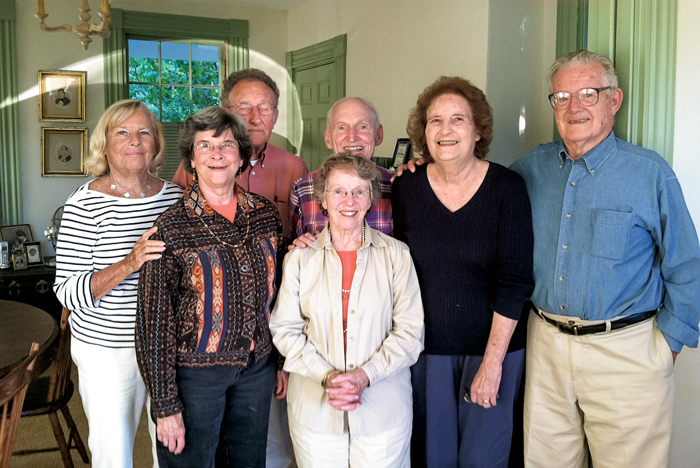 The revelers, from left to right: Joan Mannheim ‘53 (wife of William ‘53), Ann Craig ‘55, Norm Craig ‘53, Connie McIntyre ‘53, her husband, Lefty, Janet Michael ‘56, and Roger Michael ‘53. (Missing from picture are Donald Robertson ‘53, his wife, Marianne Carlton ‘54, Steve Davenport ‘53, and Joanna Davenport ‘54.)