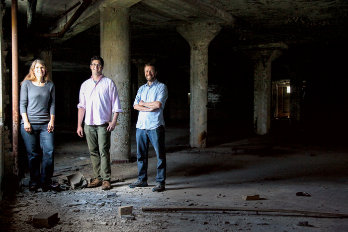 Cream Rises Naomi Sable ‘02, Josh Rosen ‘01, and Ben Ezinga ’01 at the Fairmont Creamery, which they are redeveloping.
