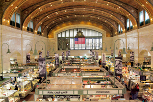 To appeal to smart young people, however, a city needs more than a low cost of living. Obies enjoy places like the Happy Dog, a hot dog restaurant that hosts chamber concerts performed by Cleveland Orchestra musicians; the Ohio City Bicycle Coop; the indie-minded Beachland Ballroom; a steady stream of hip flea markets and craft fairs; and a foodie scene that includes the voluptuous West Side Market and a growing network of urban farms planted on formerly empty city lots. “I have found a lot of things I liked about Oberlin in this city,” says Lee.