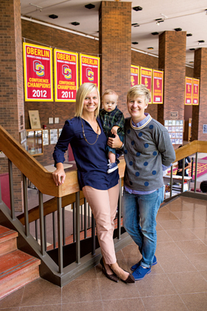 She never planned to still be in Oberlin, in a lifelong relationship with a woman, and a mommy to a child with Down syndrome. Parenthood has given her a greater appreciation for each day’s unexpected little victories: seeing two coaches working together; hearing Oberlin alumni gush about their time on campus; writing a clever email; or watching a former player thrive in life after Oberlin.