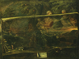Attributed to Battista Angolo del Moro, Italian, active second half of the 16th century A Vision of the Holy Family near Verona Oil on canvas AMAM 1961.83