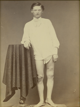 William Abraham Bell (English, born in Ireland, 1841–1921) Injured Civil War Soldier (Private Charles Westerfield, Army Medical Museum Specimen No. 4278), April 1865, 1865 Albumen print Image: 8 9/16 x 6 5/8 in. (218 x 168 mm) Mount: 13 9/16 x 10 3/4 in. (345 x 273 mm) Charles F. Olney Fund, 1991 1991.6 |