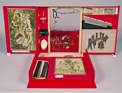 Marcel Duchamp (French, 1887–1968) Box in a Valise (Boite-en-valise), series F, 1966–1967 Paper, celluloid, glass, oil cloth, ceramic, balsa wood, red leather Overall: 16 1/4 x 15 1/8 x 3 3/4 in. (41.3 x 38.4 x 9.5 cm) Fund for Contemporary Art, 1973 1973.13 |