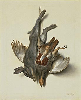 Jean-Baptiste Oudry (French, 1686-1755)A Young Rabbit and Partridge Hung by the Feet, 1751