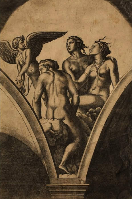 Eros and the Three Graces, from the Spandrels of the Chigi Gallery, ca. 1516–18