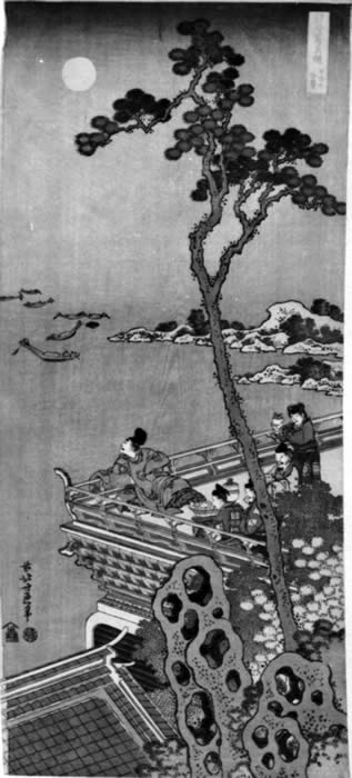 Katsushika Hokusai (Japanese, 1760 - 1849) The Poet Abe no Nakamaro Viewing the Moon on the Night before His Departure from China,1834 Color woodblock print Overall: 20 3/16 x 8 15/16 in. (513 x 227 mm) Mary A. Ainsworth Bequest, 1950 AMAM 1950.737