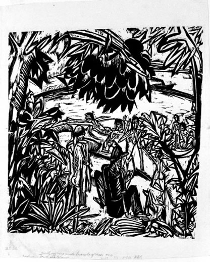 Badeszene unter uberhangenden Baumzweiten (Bathing Scene), 1913
