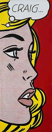 Craig belongs to Lichtenstein's series of "Girl" paintings (1963-65), which copy, enlarge, adapt, and reframe preexisting comic-strip images of "pretty" young women.1 Lichtenstein's "Girls" are usually blond, and nearly always in a state of vulnerability, suspense, or anxiety. In Craig, the sliced-off profile of the girl in distress fills most of the canvas. She looks off into the void at the right-hand edge and beyond: wistful, open-mouthed, and overwrought.
