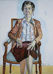While the breadth of her work was represented in various exhibitions and retrospectives, it was chiefly her portraits of the 1960s and '70s, with their brighter palette, thin surface of paint, and fluid lines, that secured her reputation as a painter who "catches humanity's moment of greatest doubt and suspends the thought forever on a flat and fragile mirror-like plane."8 In the 1970s she gave frequent slide lectures of her work.