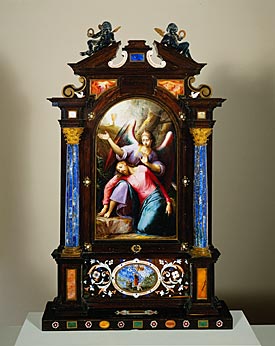 Painting, oil on copper; tabernacle and case of mixed materials