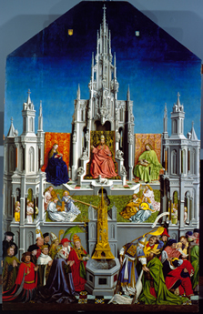 This brightly painted vision of the Last Days (based primarily on Revelation 21 and 22) opens a window onto Church dogma and attitudes towards Jews in early sixteenth-century Spain. While clearly Flemish and Eyckian in style, the origins of the painting and the identities of its creator and patron remain uncertain.